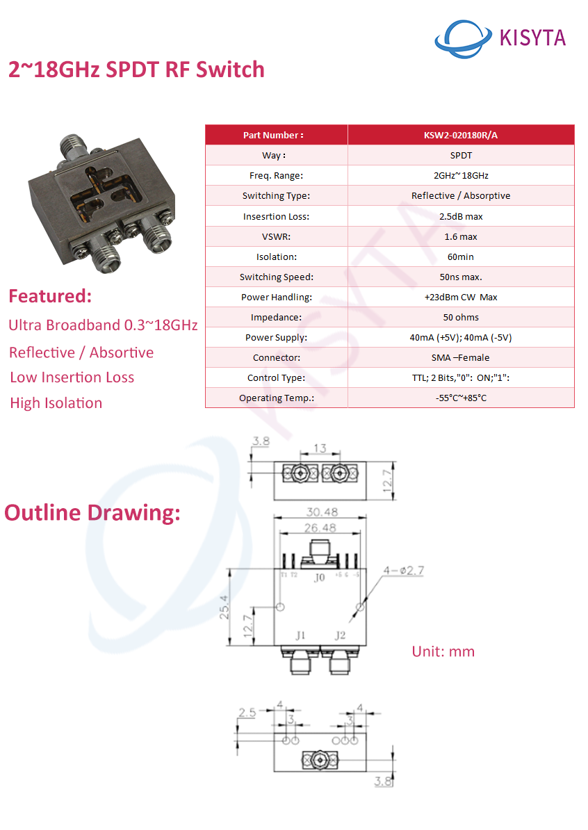 2.4~2.6GHz Low Noise Amplifier KLNA024026P14