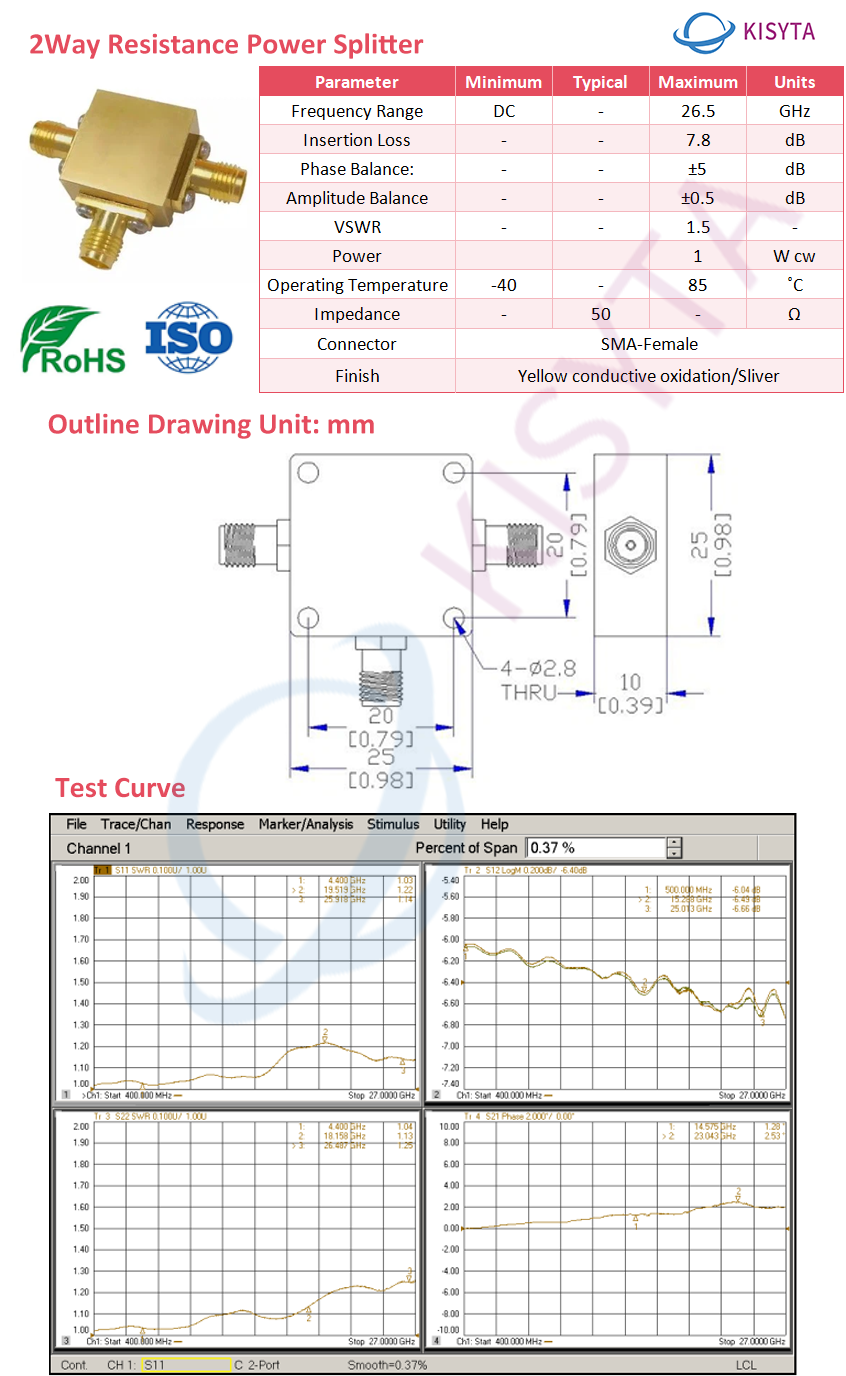 2way Resistance Power Splitter KRPS2-DC-26.5G-SF